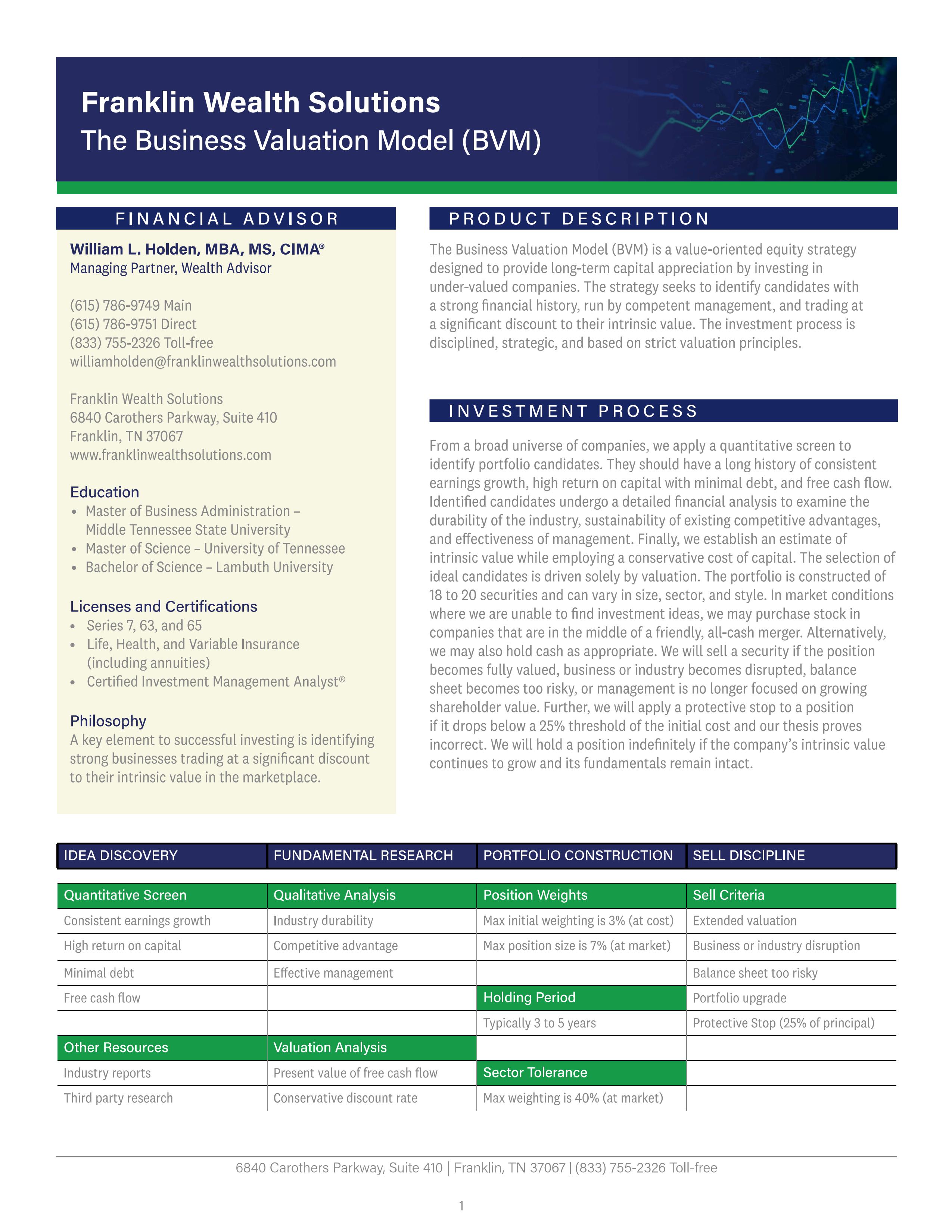 The Business Valuation Model (BVM) seeks capital appreciation through a value-driven equity strategy.